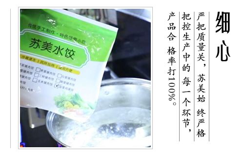 公司產(chǎn)品涵蓋速凍水餃(含手工水餃和大餡水餃)、速凍餛飩、速凍湯圓等三個系列、30多個花色品種,主要產(chǎn)品在華東、華西、華北的市場占有率達18%以上,其中蘇美的芹菜豬肉水餃、韭菜雞蛋水餃以其獨特的口感,大受消費者好評,成為了新晉的網(wǎng)紅美食.